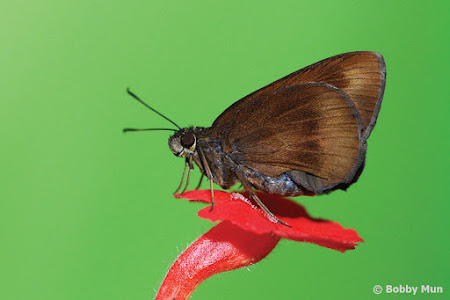 Besides feeding on flowers for nectar, the Chocolate Demon can sometimes be seen to feed on bird droppings and other animal excretions, although it is rarely seen to puddle at damp forest paths. It can be skittish at times and sometimes 'jump' at the flash when photographed.