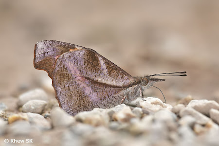 I spotted a Club Beak (Libythea myrrha borneensis) foraging amongst some rocks, but it was doing so with half-opened wings. Normally, this species stops with its wings folded upright, and getting a glimpse of its uppersides is only when it flies. This one stopped to puddle with its wings slightly opened, showing a more attractive side to it compared to its striated and rather unattractive undersides.